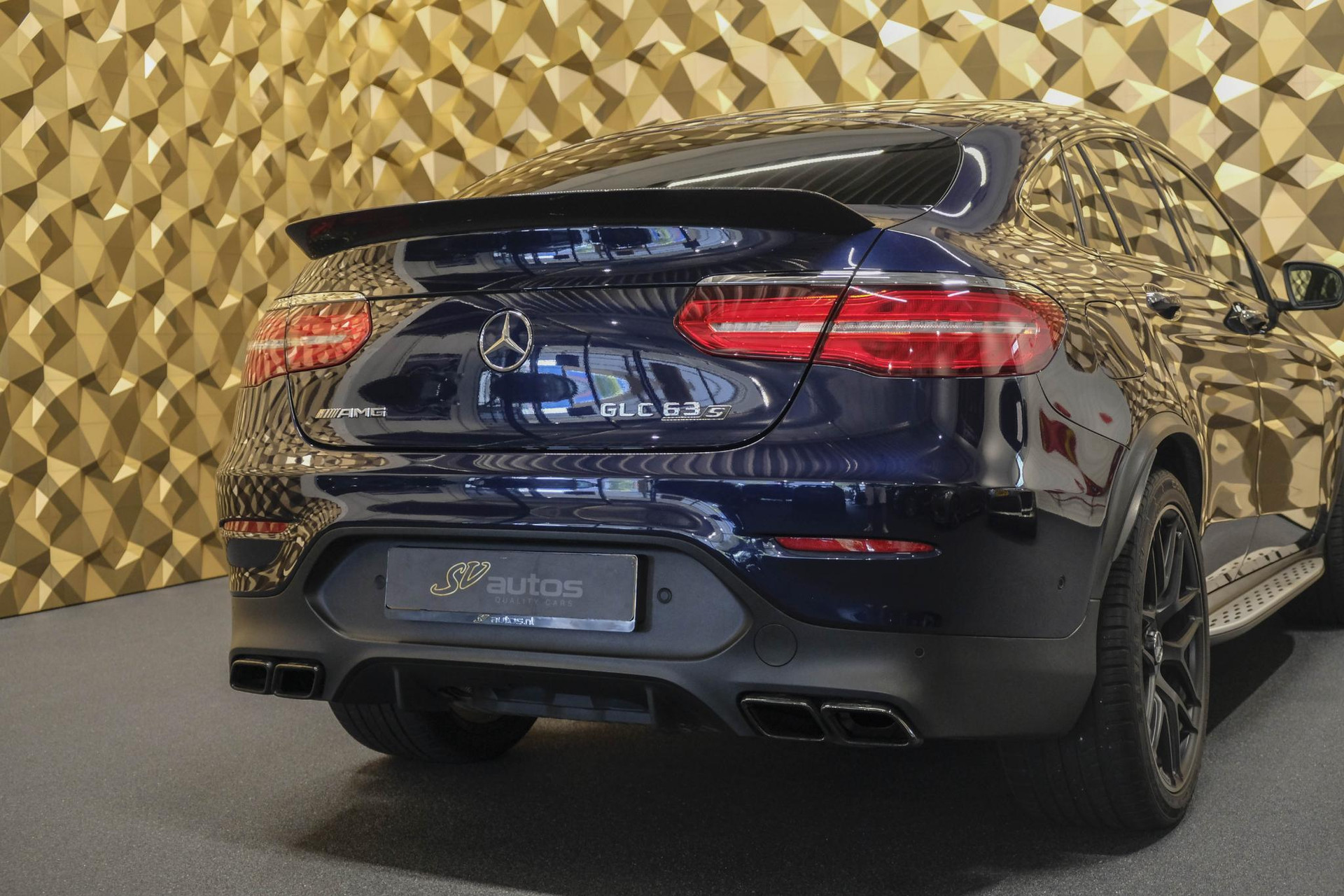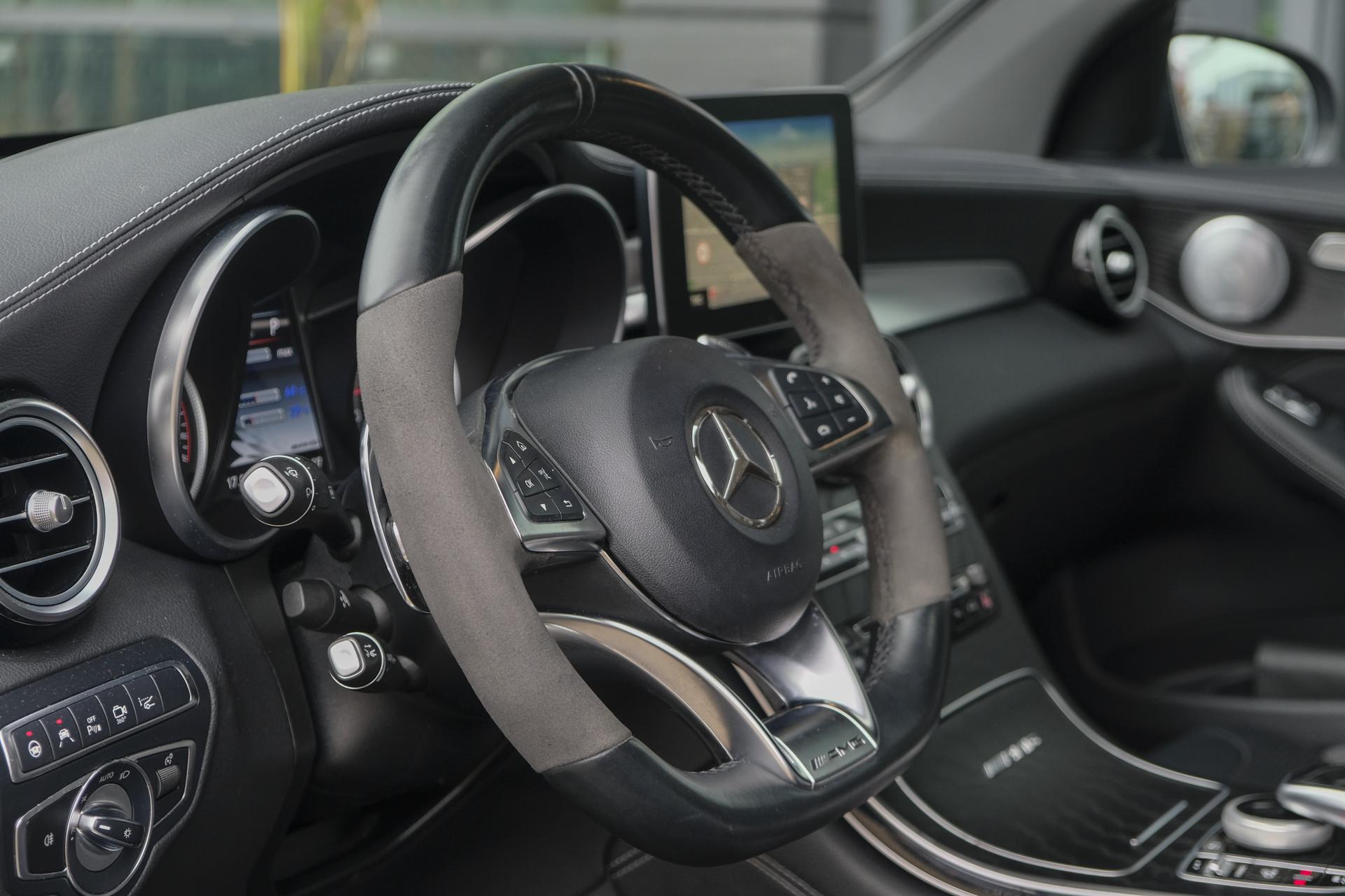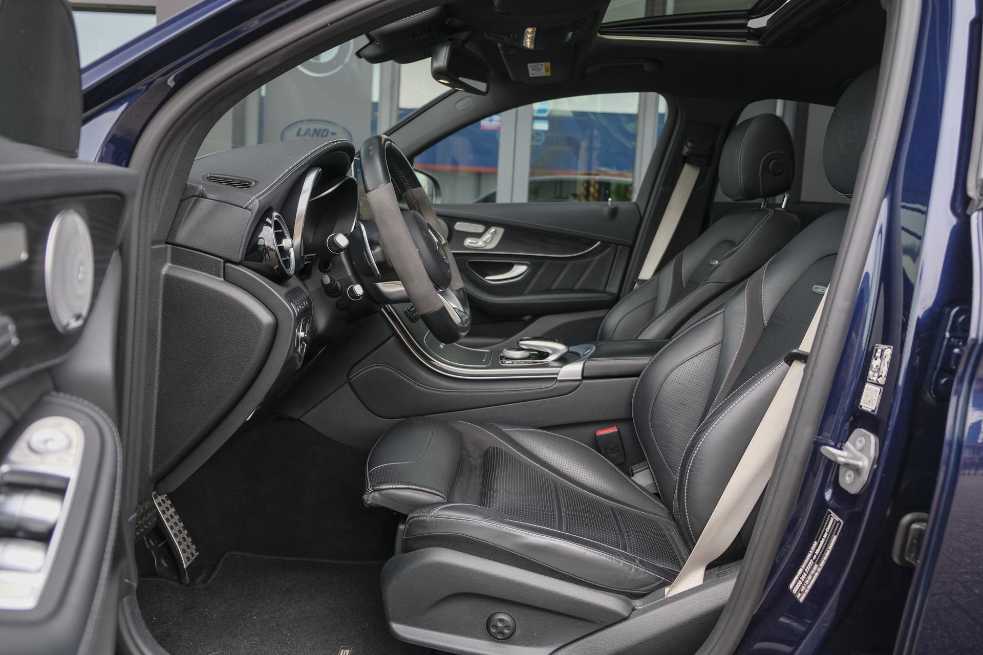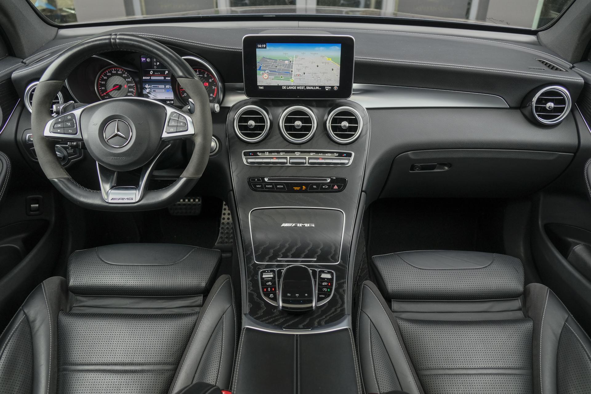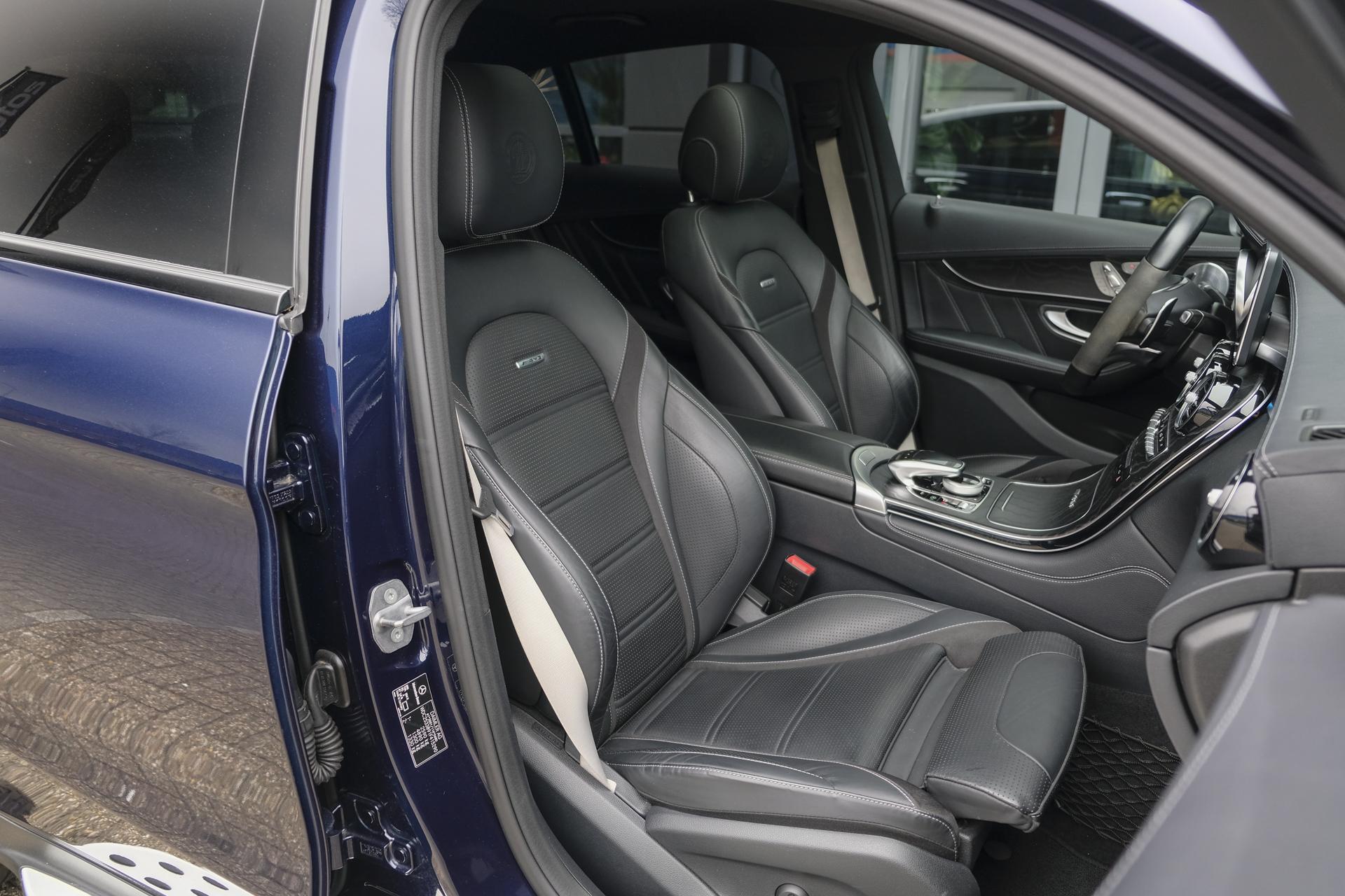 Deze Mercedes-AMG GLC63s doet een beetje denken aan de uitsmijter van de lokale club, diegene waar je geen problemen mee wilde. Hij is bruut, gespierd en vooral heel erg aanwezig. Deze is voorzien van het night pakket en carbon pakket, dus: carbon spiegelkappen, een knots van een carbon spoilerlip op de kofferklep, zwarte grille omlijsting, zwarte raamlijsten, zwarte 21” velgen, getinte ramen, etc. Verder nog gigantische (KERAMISCHE!!) remmen met gouden remklauwen. De auto ziet er zeer netjes uit en staat in z'n 1e lak! Geen schadehistorie!