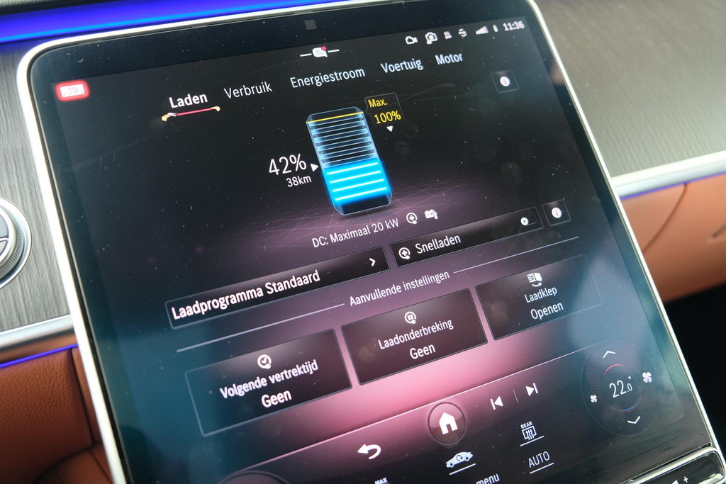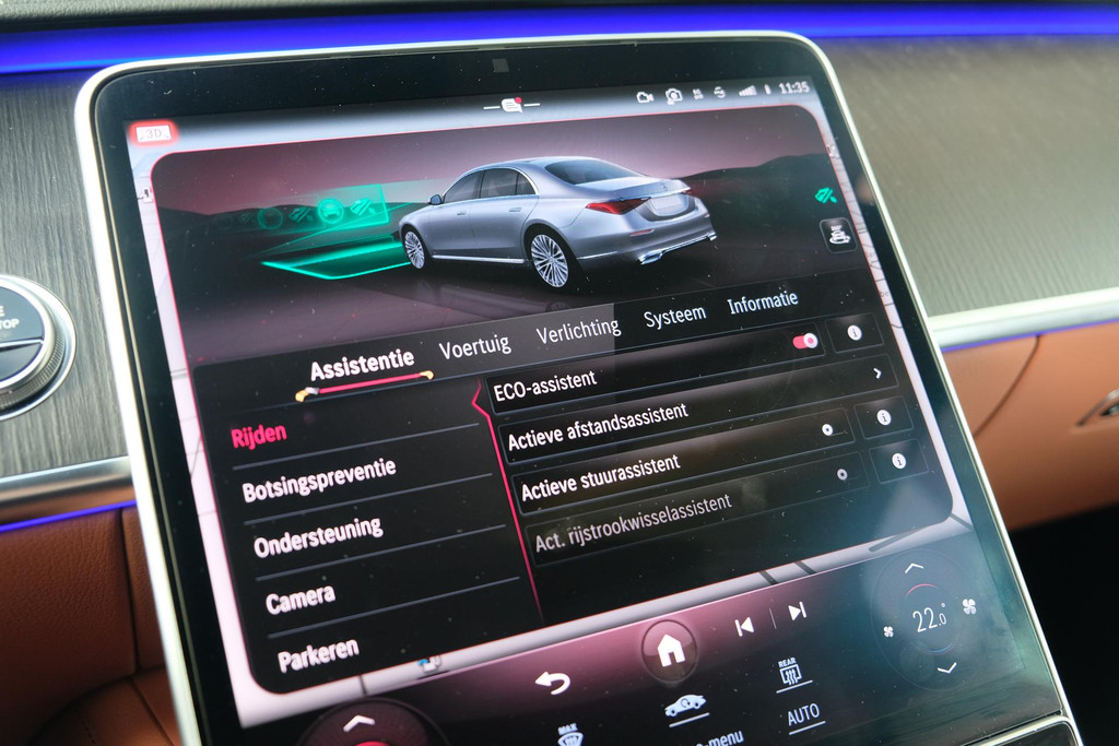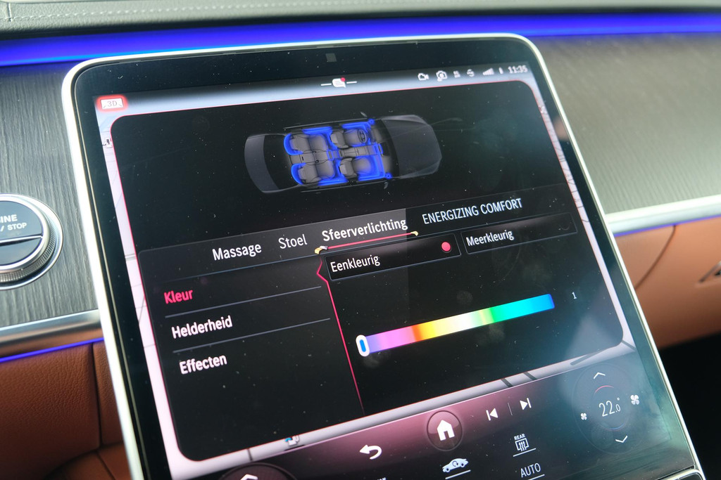 Ook van binnen is dit een geweldige auto. De auto is uitgevoerd met een prachtig donkerbruin lederen nappa interieur. En natuurlijk afgeladen met opties. Onder andere voorzien van: Burmester 3D audio, 4-wielsturing, panoramadak, keyless, dab radio, stoelverwarming voor + achter, stoelkoeling voor + achter, stoelmassage, hoofdkussens, sfeerverlichting, stuurwielverwarming, 3d display, MBUX tablet achter, parfumering etc!!!