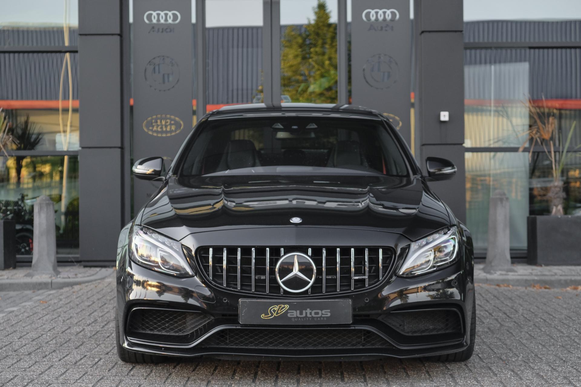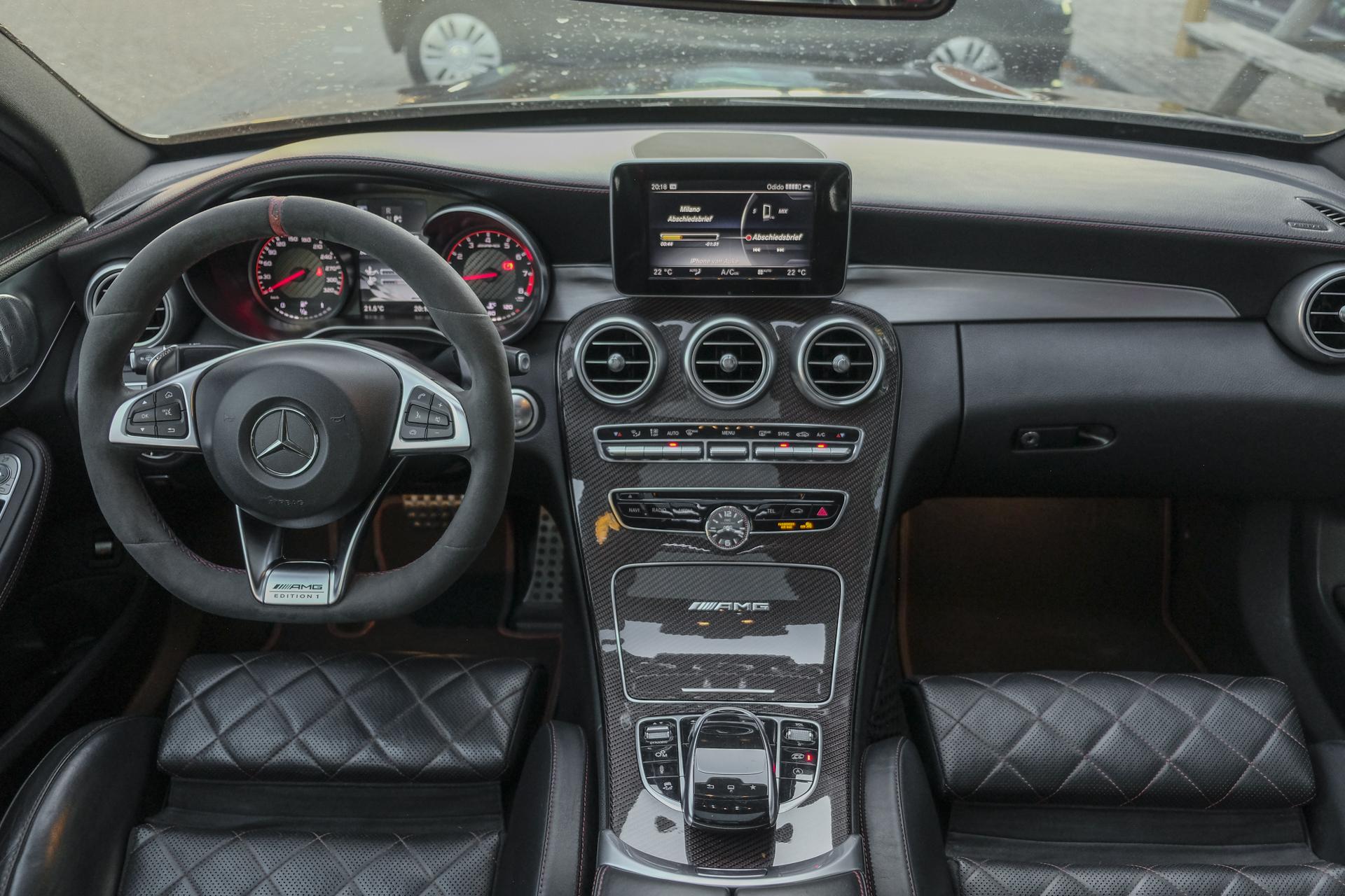 Zeer dikke Mercedes C63s AMG Edition 1 binnen. Helemaal in de uitvoering zoals je hem zou willen. Zeer dikke auto om te zien dankzij de zwarte kleur in combinatie met de 19-inch edition 1 velgen.